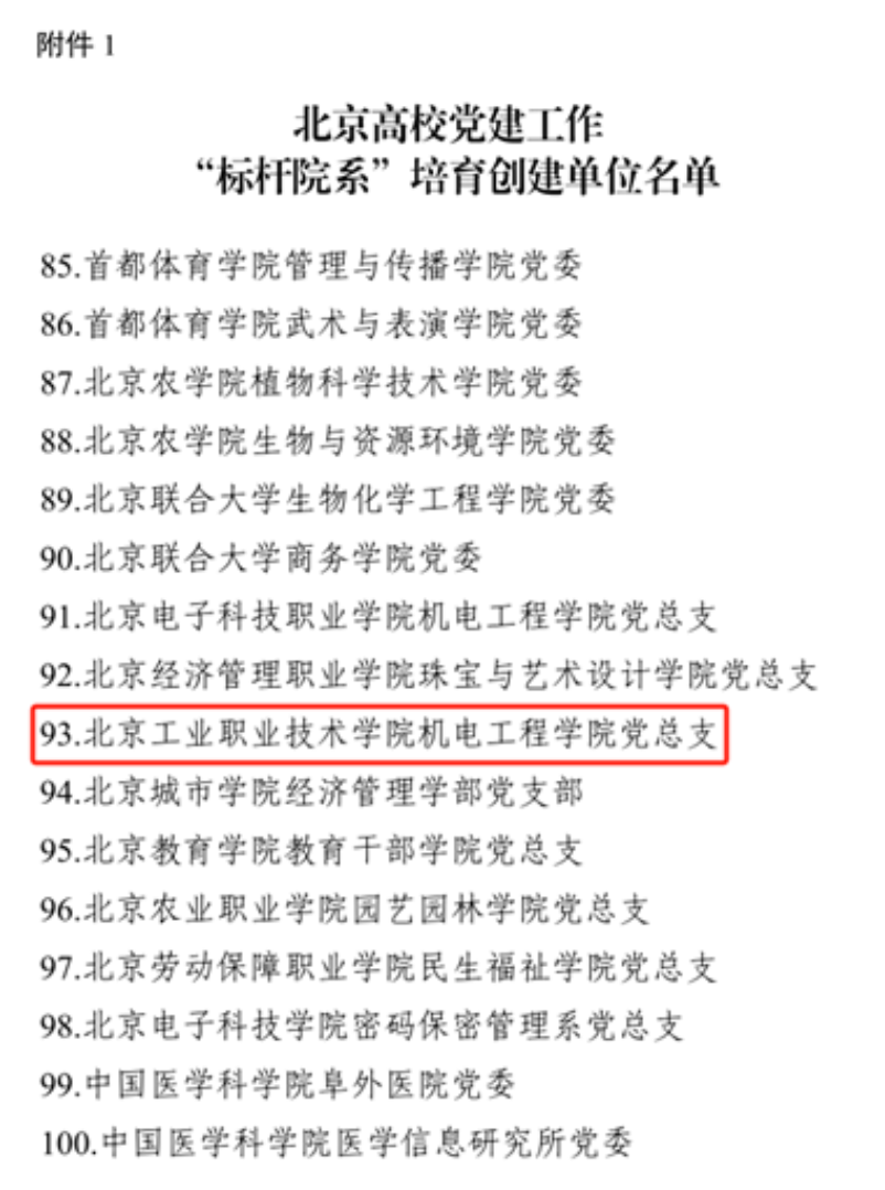 我校機電工程學院獲評北京高校黨建工作“標桿院系”培育創(chuàng)建單位,機電工程學院機電黨支部、文法與管理學院管理黨支部、基礎教育學院英語黨支部等3個支部獲評北京高校黨建工作“樣板支部”培育創(chuàng)建單位,“創(chuàng)建孵化黨建品牌‘新平臺’,激發(fā)建設‘一融雙高’新活力”、“黨建賦能‘三個三工程’,開創(chuàng)‘以體育人’新局面”等2個項目獲評北京高校黨建工作“黨建引領實踐創(chuàng)新示范項目”。