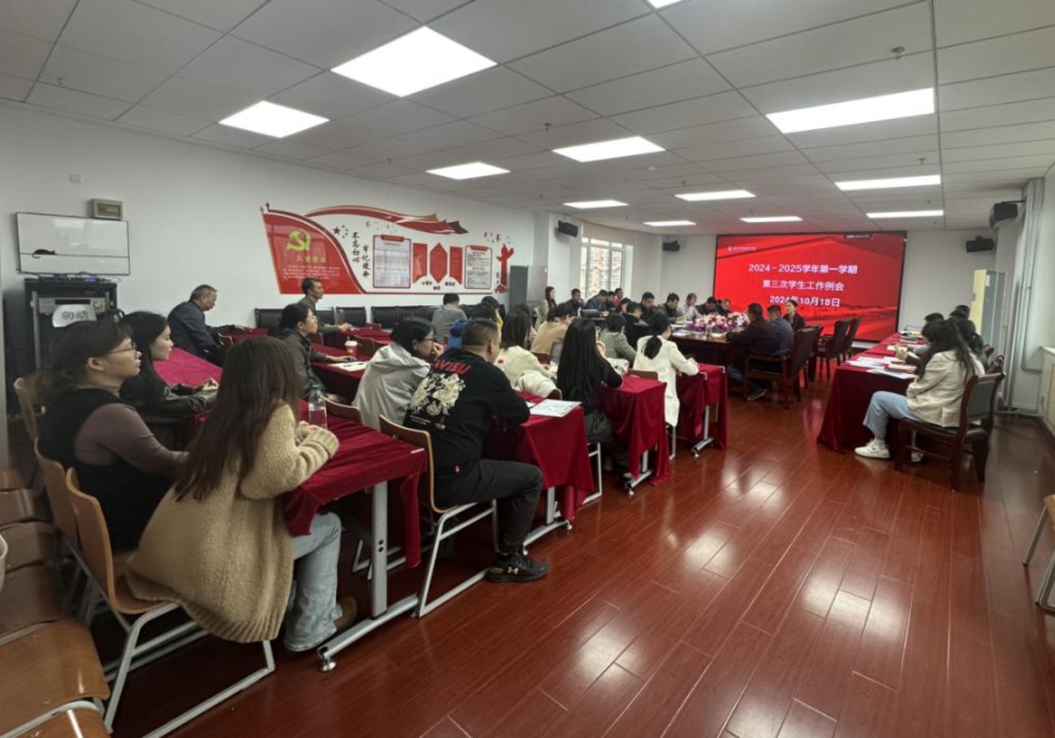宣傳部、教務(wù)處、招生就業(yè)處、安穩(wěn)處、團(tuán)委和學(xué)生工作處負(fù)責(zé)人、各二級學(xué)院黨總支副書記,學(xué)生工作處、團(tuán)委全體人員、全校輔導(dǎo)員和班主任參加了會議。