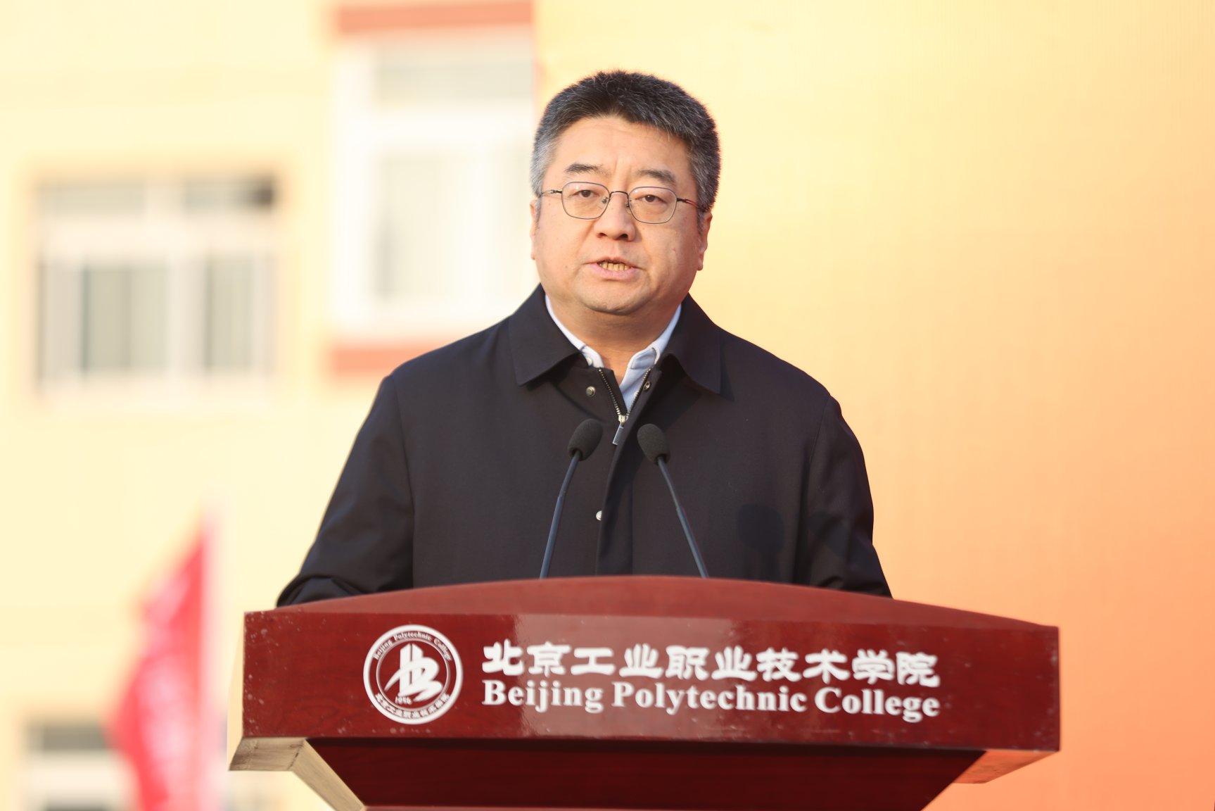 11月12日上午8時,北京工業(yè)職業(yè)技術(shù)學院五號學生公寓建設項目開工動員會舉行。北京市教育委員會二級巡視員張鳳華,門頭溝區(qū)人民政府副區(qū)長馬超鷹,北京市教育委員會基建處副處長劉洪濤,北京建工集團有限責任公司黨委副書記張軍,校黨委書記田紅芳等領導出席會議,黨委副書記、校長柳長安主持開工動員會。