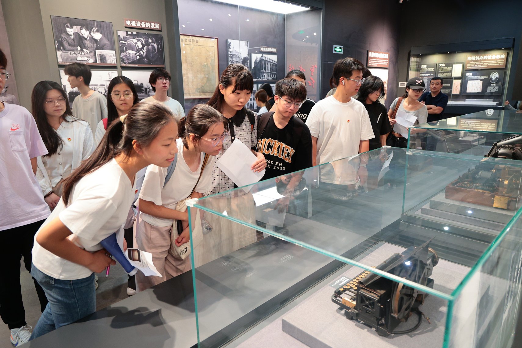6月20日,馬克思主義學院思政課教師團隊聯合工程測量黨支部、建工學院第二學生黨支部,帶領50余名學生走進中國電信博物館,開展以“穿越時空,共探電信傳奇”為主題的實踐教學活動。師生們通過實物展陳、文獻資料與科技互動,在電信業百年奮斗史中觸摸科技創新的時代脈搏,厚植科技報國的使命擔當。