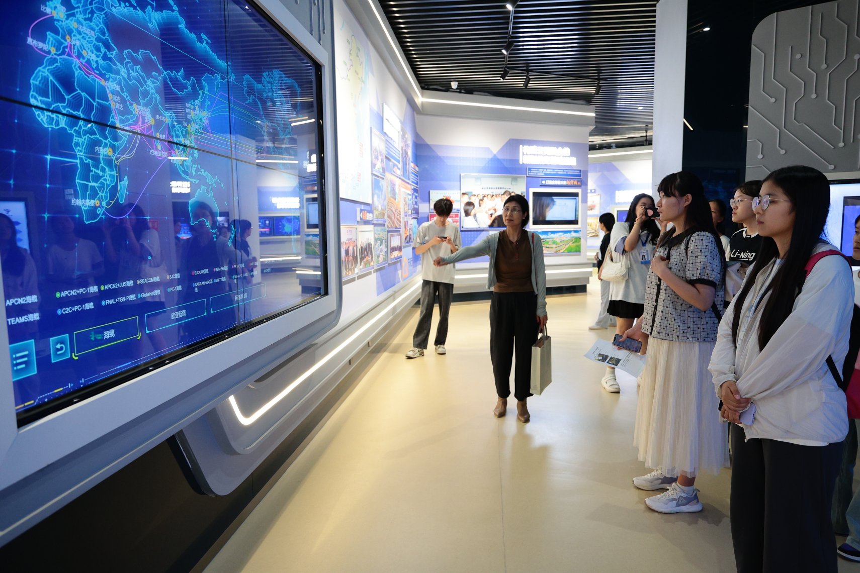 來到當代通信技術展區,5G 技術、量子通信、衛星通信等前沿成果令人目不暇接。學生們親眼目睹了中國電信行業從追趕到并跑,再到部分領域領跑世界的偉大跨越。當看到我國自主研發的通信設備在全球廣泛應用時,學生們紛紛為祖國的科技實力點贊。教師借此契機,向學生詳細解讀習近平新時代中國特色社會主義思想中關于創新驅動發展戰略的內涵,強調科技創新是引領發展的第一動力,激勵學生樹立科技報國的遠大志向。