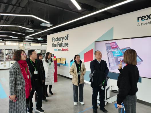 調(diào)研的第三站是博世力士樂電子傳動與控制公司。魏曉東書記一行在公司負(fù)責(zé)人的陪同下參觀了博世力士樂智能制造工廠與生產(chǎn)車間,并與技術(shù)研發(fā)人員進(jìn)行了交流。