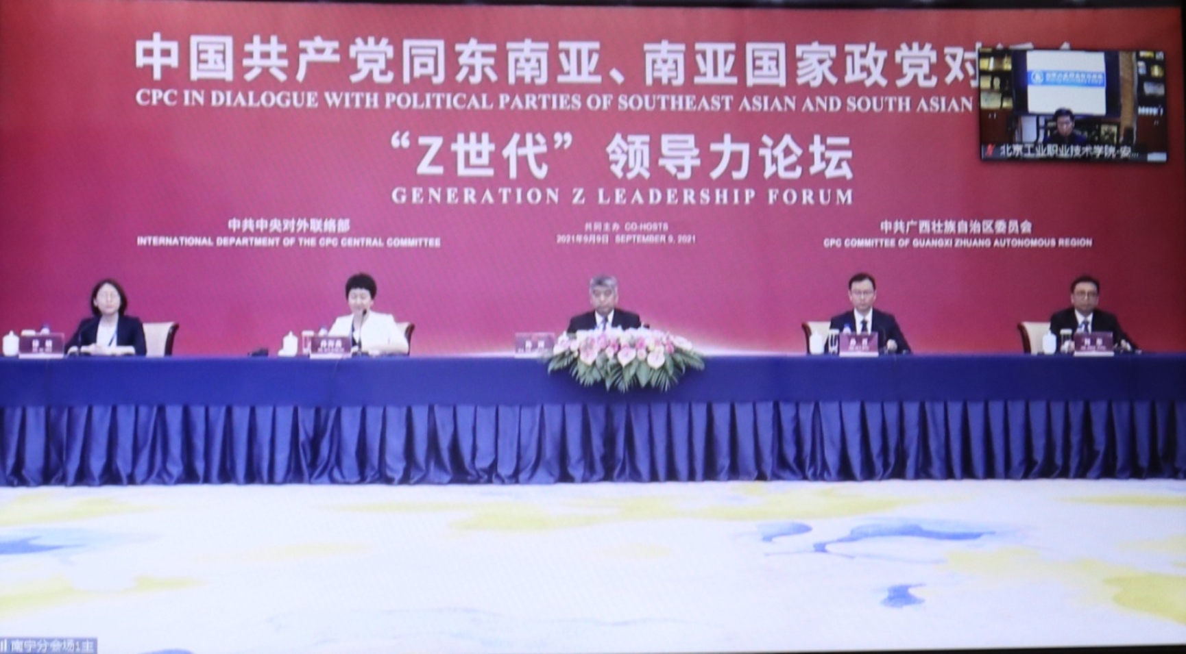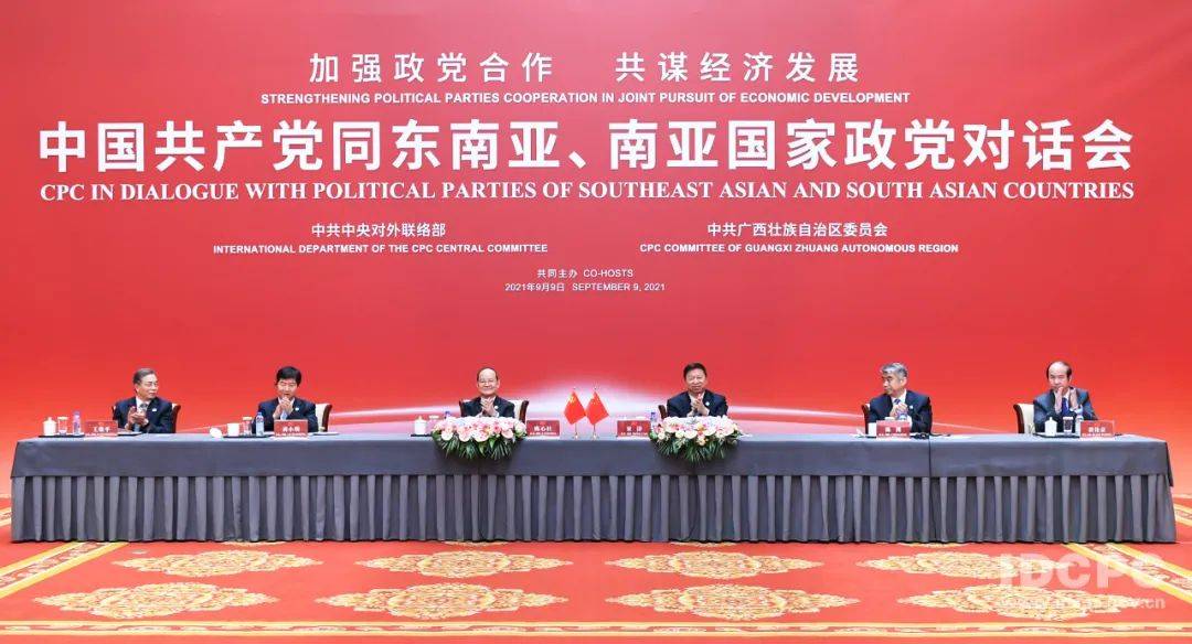 由中共中央對外聯絡部和中共廣西壯族自治區委員會共同主辦的中國共產黨同東南亞、南亞國家政黨對話會于9月9日在廣西南寧舉行。此次對話會的主題為“加強政黨合作,共謀經濟發展”。東南亞、南亞國家40多個主要政黨的領導人及駐華使節參加了對話會。對話會旨在通過政黨間深入交流,凝聚地區團結協作共抗疫情的政治共識,增進各國政黨特別是青年政治家間友好互信,為應對疫情挑戰,促進經濟復蘇發展和地區和平穩定貢獻政黨智慧、政黨方案、政黨力量。