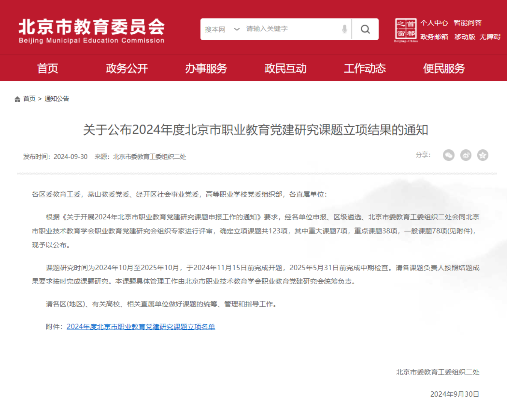 2024年度北京市職業(yè)教育黨建研究課題立項名單 |