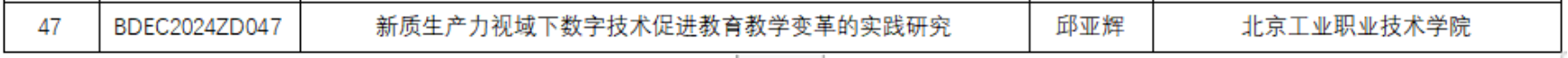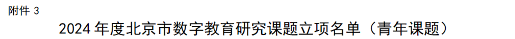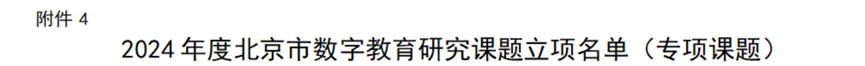 近日,北京市教委公布了2024年度北京市數字教育研究課題立項名單,我校成功獲批重點課題1項、一般課題1項、青年課題1項、專項課題1項。