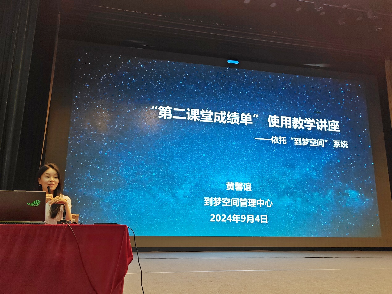 黃馨誼老師詳細且深入的向同學們介紹了到夢空間APP的操作流程和參與活動流程,確保每位同學都能輕松上手。黃老師鼓勵同學們充分利用這一平臺,主動參與各類活動豐富自己的校園生活,充分激發了同學們參與第二課堂的熱情和對未來校園學習生活的向往。