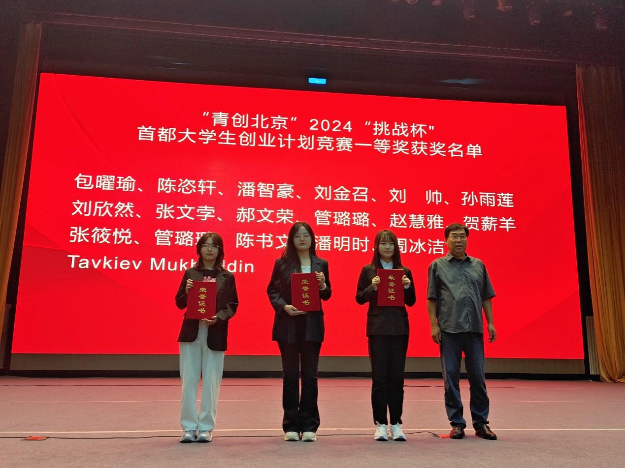 團委書記鄭興主持開展2024年創新創業大賽表彰大會暨優秀事跡宣講會,向在中國國際大學生創新大賽(2024北京賽區)、2024“挑戰杯"首都大學生創業計劃競賽、第三屆“京彩大創”北京大學生創新創業大賽中獲獎同學頒發證書。