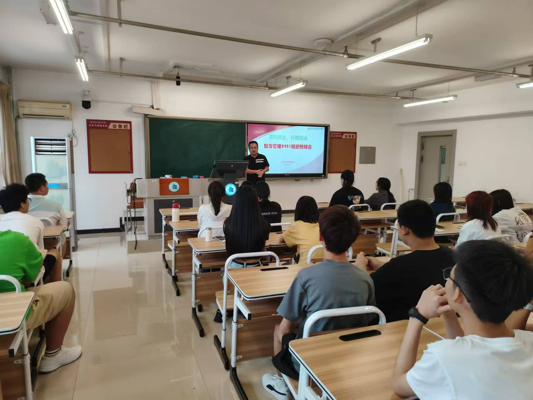 為加強鑄牢中華民族共同體意識教育,幫助新生盡快適應大學生活,引導新生樹立正確的世界觀、人生觀和價值觀,文法與管理學院各班召開了新生第一堂主題班會,實現了新生開學主題班會的學院全覆蓋。各班輔導員圍繞思想政治教育、新生適應性教育、校紀校規、安全教育、防詐騙教育等開展全方位教育活動,班會內容豐富、成效良好。