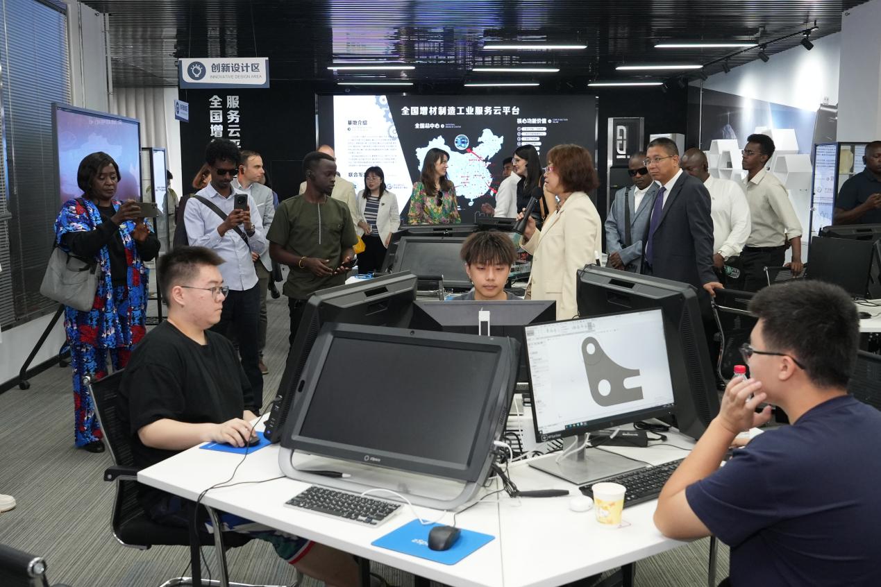 在高世吉的陪同下,記者團一行還參觀了我校施耐德中法能效管理應用人才培養和研究中心、汽車實訓中心、3D打印實訓中心、機器人實訓中心、城市空間信息北斗技術實訓中心、無人機測繪VR實訓中心、地形測量實訓中心等實訓室,對我校理實一體的教學模式、先進的實訓設備及優美的校園環境深表贊賞。肯尼亞記者布萊恩·恩古吉·恩吉羅格在參觀結束后,對目前中國的職業教育發展水平大加贊嘆,表示終于了解到中國成為“世界工廠”的一個非常重要的原因就是背后有中國職業教育為其提供的堅實人才支撐與教育基礎。