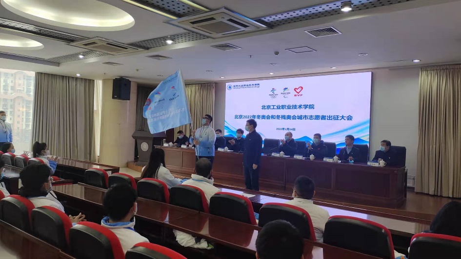 (我校北京2022冬奧會和冬殘奧會城市志愿者出征大會現場)