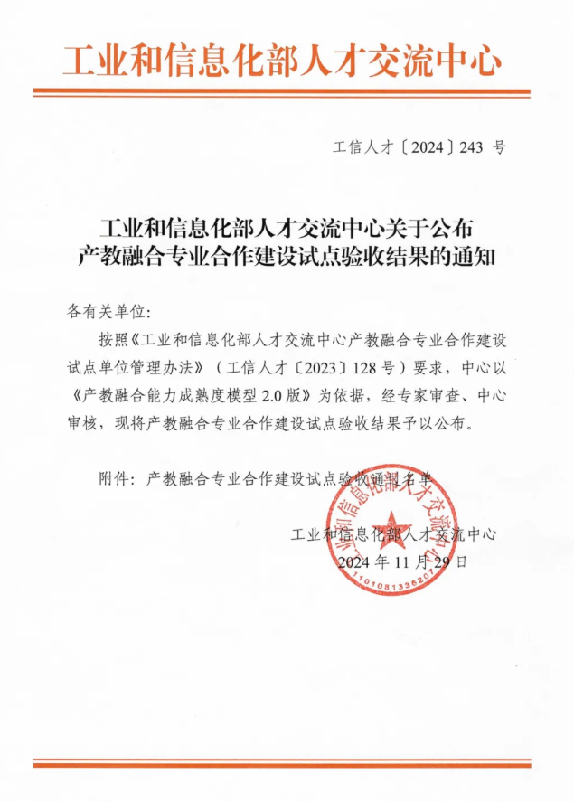 近日,工業(yè)和信息化部人才交流中心發(fā)布《關(guān)于公布產(chǎn)教融合專業(yè)合作建設(shè)試點(diǎn)驗(yàn)收結(jié)果的通知》,我校計(jì)算機(jī)網(wǎng)絡(luò)技術(shù)專業(yè)順利通過(guò)驗(yàn)收。