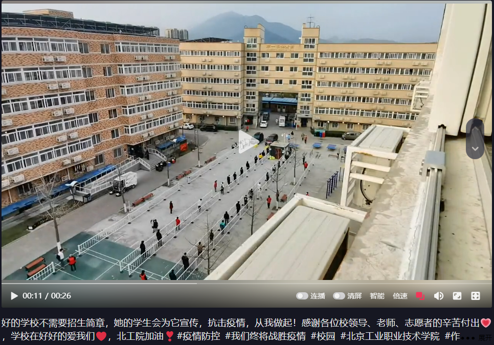 移動2031班蔡浩東同學表示,學校近日疫情防控形勢嚴峻復雜,關鍵時刻,大家響應學校號召,挺身而出、主動作為,沖鋒在疫情防控最前沿,學校領導班子用行動樹起標桿,用堅守詮釋擔當,用奉獻鑄就情懷,以無畏無私的勇氣書寫著北工院的力量,而這一幕幕成為北京工業職業技術學院里最美的風景線。