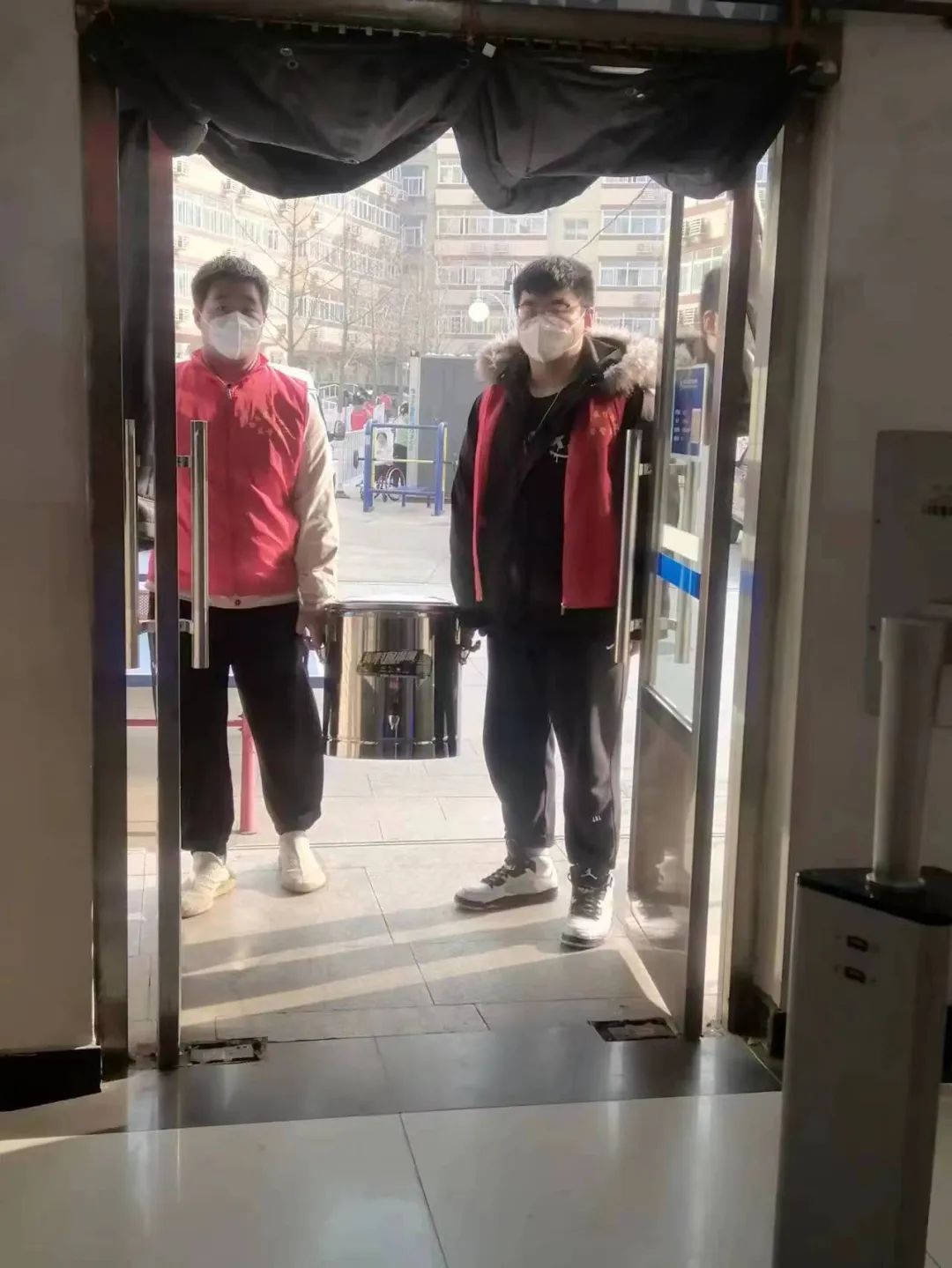 為了保證同學們能夠在宿舍喝上熱水,后勤集團以最快速度采購了45個保溫桶。18日夜,師生志愿者連夜將裝滿熱水的保溫桶分置于學生公寓各樓層。