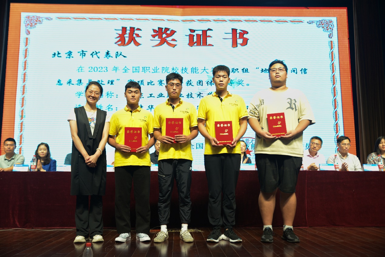 金秋九月是收獲的季節,也是這四位同學歷時7個月時間的努力過關斬將取得碩果佳績的時節。他們是來自無人機測繪技術專業2131班的徐建華、王智欣、竇星卓、鄭棕文,這支團隊在開學前剛剛結束的2023年全國職業院校技能大賽(高職組)“地理空間信息采集與處理”賽項中榮獲全國一等獎。在今天的新老生交流會上,沈瑩副院長為他們再次頒發榮譽獎勵證書。