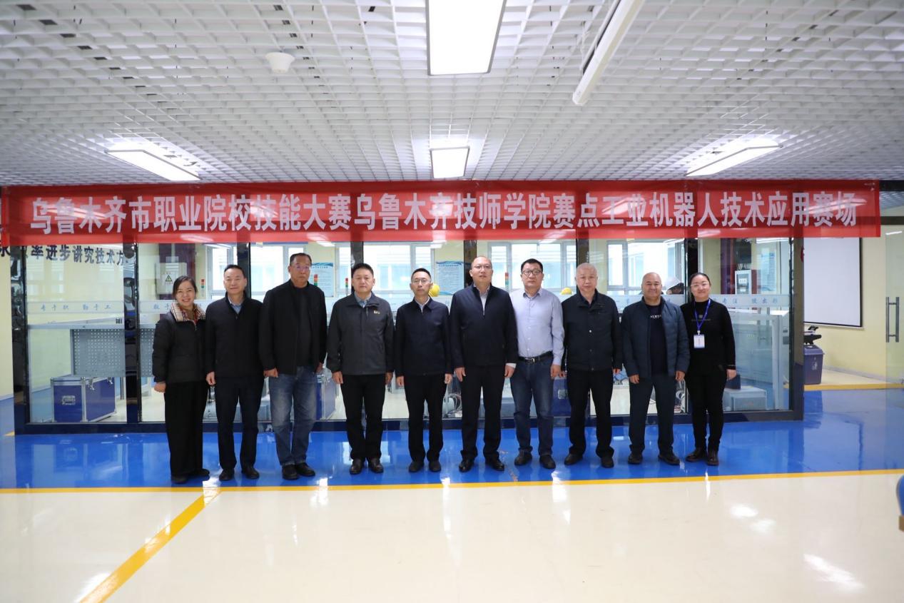 簽約儀式前,柳長安與自治區(qū)教育廳職成處處長郝治、烏魯木齊市教育局副局長鄭陽一起前往烏魯木齊職業(yè)技術(shù)學院承辦的技能大賽現(xiàn)場觀賽。