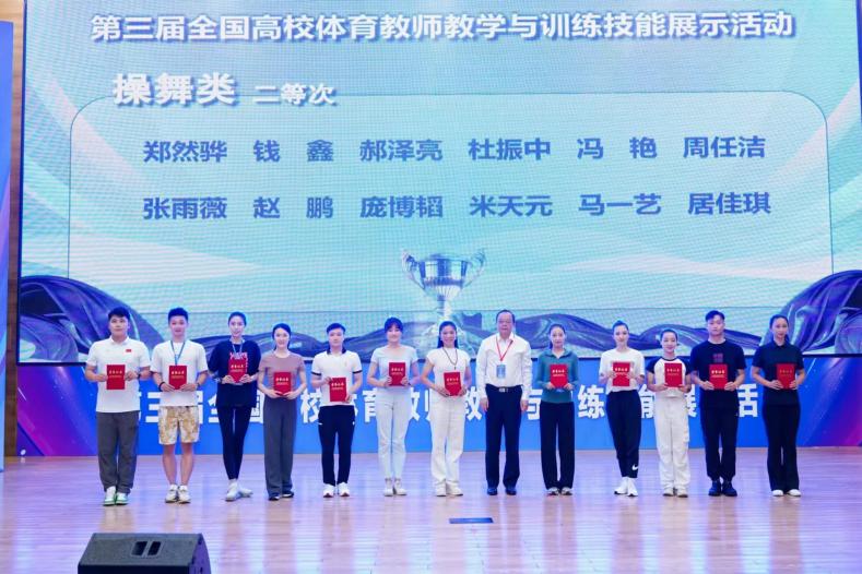 2024年10月11-12日,由全國高等學校體育教育指導委員會主辦的第三屆全國高校體育教師教學與訓練技能展示活動在華南理工大學成功舉辦。此次活動共有103所高校,214名老師參加,其中9位教師代表北京高校參賽,他們分別來自北大、清華、北京交通大學、北京工業大學、北京工業職業技術學院5所高校。同場參加比賽的選手還有奧運會、亞運會、全國冠軍等。展示比賽分為排球、羽毛球和健美操三類項目進行。我校體育部郝澤亮老師參加了健美操項目的展示比賽,經過激烈的授課視頻評比、體能比賽、專項比賽,最終榮獲二等獎。
