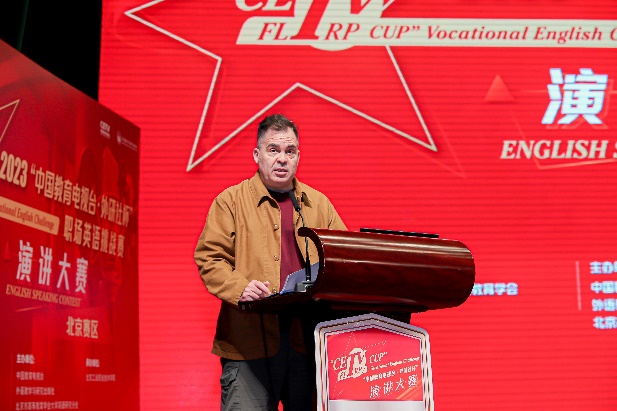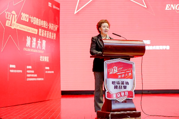 張舍茹教授在致辭中指出,職業教育同仁應與時俱進,立足國際坐標,服務國家戰略,培養高素質、具備跨文化交流能力的人才,聚焦提升青年學子的語言技能、職業精神、人文素養、責任擔當,在新征程中體現新擔當,展現新作為,并鼓勵青年學子做好中國故事的親歷者和講述者,用智慧和熱情將中國故事講出國際范和時代感,在外研社和中國教育電視臺為大家搭建的平臺上盡展風采、賽出水平。李淑靜社長在致辭中提到,在我國與“一帶一路”沿線國家的交流往來日益密切、經濟文化活動開展頻繁、對外語人才的需求更為緊迫的背景下,“中國教育電視臺·外研社杯”職場英語挑戰賽以賽為端,全面落實“崗課賽證”綜合育人要求,旨在選拔高素質、具備跨文化交際能力的技術技能人才,鋪設好“語言互通”這一道路和橋梁。
