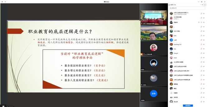曾所長以“職業(yè)教育前途廣闊,大有可為”開篇,指出我國職業(yè)教育發(fā)展迅速,應(yīng)將“大有可為”化為發(fā)展動(dòng)力而“有所作為”,他通過習(xí)近平總書記的重要講話,深入淺出地闡述了職業(yè)教育的底層邏輯,揭示了我國職業(yè)教育的八大本質(zhì):職業(yè)教育是服務(wù)全民的大眾教育;職業(yè)教育是面向市場的就業(yè)教育;職業(yè)教育是培養(yǎng)技能的技術(shù)教育;職業(yè)教育是培養(yǎng)能力的實(shí)踐教育;職業(yè)教育是產(chǎn)教融合的跨界教育;職業(yè)教育是個(gè)性發(fā)展的選擇教育;職業(yè)教育是覆蓋終身的生涯教育;職業(yè)教育的體系化、多樣化、高端化、品質(zhì)化發(fā)展。他強(qiáng)調(diào),職業(yè)教育的核心是民生教育,是其他類型教育所無法替代的,具有重要意義。他表示北京工業(yè)職業(yè)技術(shù)學(xué)院已經(jīng)走在全國職教發(fā)展前列,并對我校的發(fā)展前景提出更高希望。
