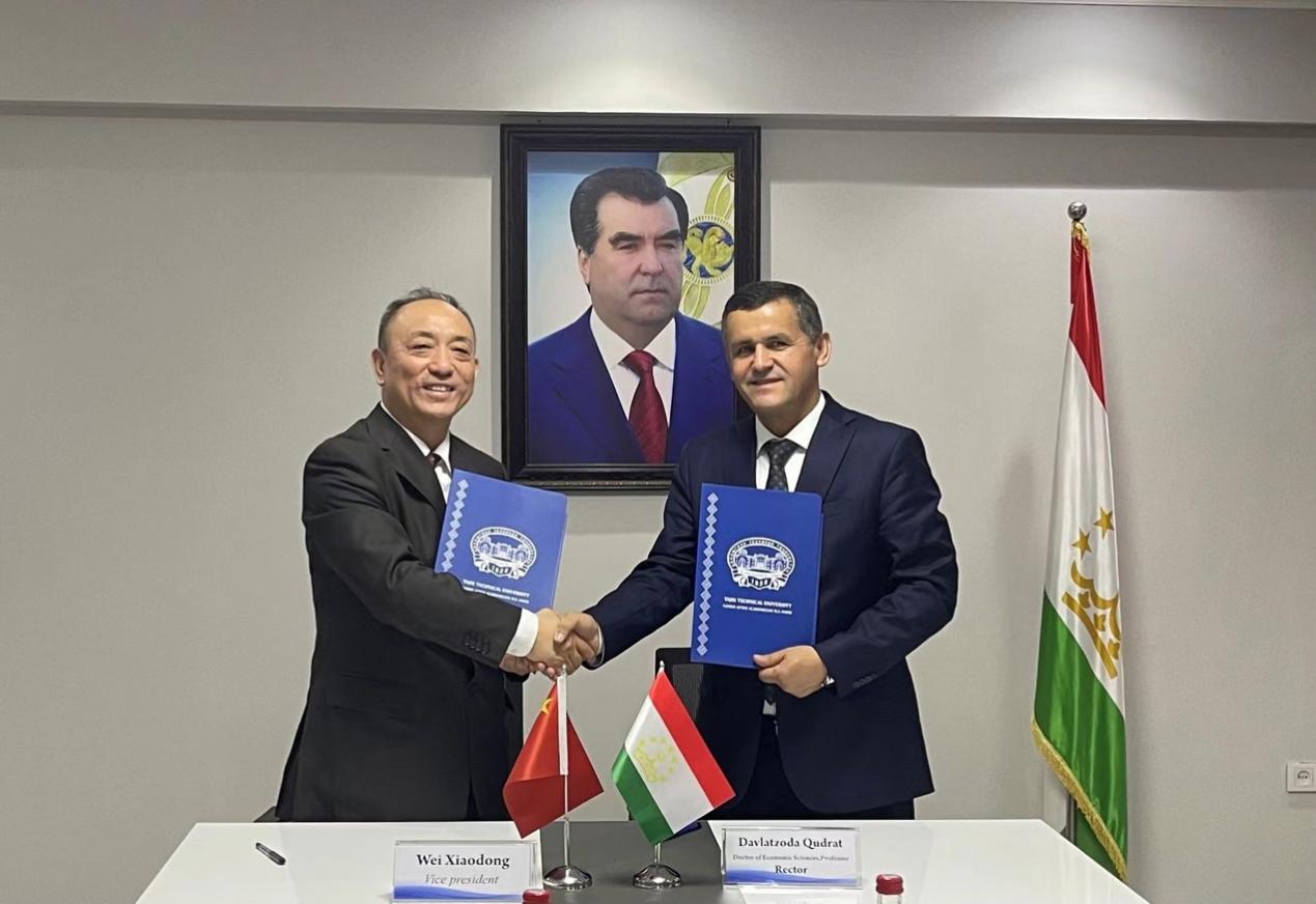 魏曉東副書記代表學(xué)校與塔吉克斯坦技術(shù)大學(xué)簽署框架性合作協(xié)議
